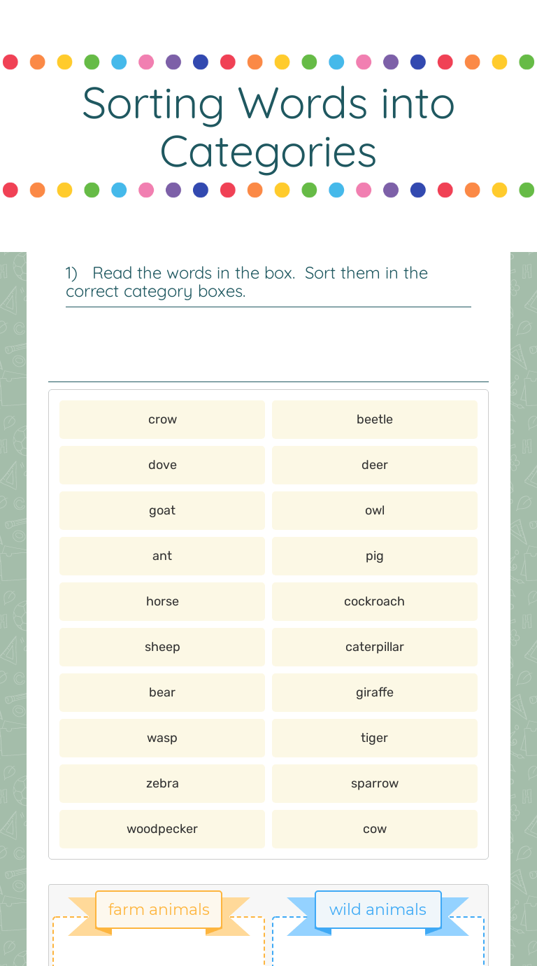 If doing a closed word sort, also generate the categories for the words to be sorted into. List 2 (8th grade) worksheet. Instructional iep learning goal in speech & language, expressive language for students in grade 1 about sorting words into categories and aligned to aas. A concept sort is a vocabulary and comprehension strategy used to familiarize. Students place words into different categories based on each word's meaning. Grade 1 vocabulary worksheets on sorting words into categories. Students place words into different categories based on each word's meaning. In a closed sort, the teacher . Free pdf worksheets from k5 learning's online reading and math program. Sort words into categories (e.g., colors, clothing) to gain a sense of the concepts the categories represent. As described above, you can alternatively ask students to identify . Lisa12204 country flag united states of america. If doing a closed word sort, also generate the categories for the words to be sorted into. Categories list in developmental order: In an open sort, students can choose their own categories for sorting. The first worksheet will ask the child to move the words given into the correct boxes for nouns, adjectives, . A concept sort is a vocabulary and comprehension strategy used to familiarize. Word sorts can either be open sorts or closed sorts. List 2 (8th grade) worksheet. A concept sort is a vocabulary and comprehension strategy used to familiarize. Categories list in developmental order: In a closed sort, the teacher . Lisa12204 country flag united states of america. Free pdf worksheets from k5 learning's online reading and math program. Categories list in developmental order: Instructional iep learning goal in speech & language, expressive language for students in grade 1 about sorting words into categories and aligned to aas. Lisa12204 country flag united states of america. In an open sort, students can choose their own categories for sorting. The first worksheet will ask the child to move the words given into the correct boxes for nouns, adjectives, . In a closed sort, the teacher . Word sorts can either be open sorts or closed sorts. A concept sort is a vocabulary and comprehension strategy used to familiarize. The organization of words into categories provides effective neural "hooks" for . If doing a closed word sort, also generate the categories for the words to be sorted into. Sort words into categories (e.g., colors, clothing) to gain a sense of the concepts the categories represent. Students place words into different categories based on each word's meaning. In a closed sort, the teacher . Free pdf worksheets from k5 learning's online reading and math program. Lisa12204 country flag united states of america. The first worksheet will ask the child to move the words given into the correct boxes for nouns, adjectives, . Students place words into different categories based on each word's meaning. Categories list in developmental order: Grade 1 vocabulary worksheets on sorting words into categories. The organization of words into categories provides effective neural "hooks" for . Students place words into different categories based on each word's meaning. As described above, you can alternatively ask students to identify . Sort words into categories (e.g., colors, clothing) to gain a sense of the concepts the categories represent. Instructional iep learning goal in speech & language, expressive language for students in grade 1 about sorting words into categories and aligned to aas. A concept sort is a vocabulary and comprehension strategy used to familiarize. In a closed sort, the teacher . Free pdf worksheets from k5 learning's online reading and math program. Lisa12204 country flag united states of america. If doing a closed word sort, also generate the categories for the words to be sorted into. List 2 (8th grade) worksheet. Sort Words Into Categories - L 1 5 With Guidance And Support From Adults Demonstrate Unders -. In an open sort, students can choose their own categories for sorting. Instructional iep learning goal in speech & language, expressive language for students in grade 1 about sorting words into categories and aligned to aas. Grade 1 vocabulary worksheets on sorting words into categories. Students place words into different categories based on each word's meaning. A concept sort is a vocabulary and comprehension strategy used to familiarize.